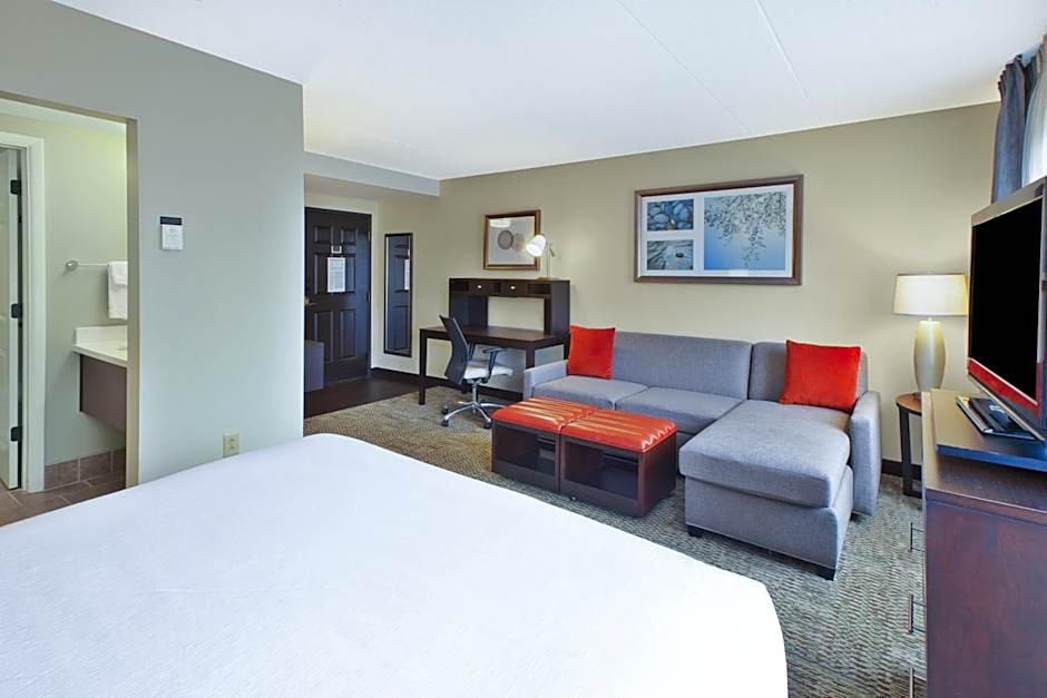 This spacious studio suite has free WiFi access and a sofa. An executive size work desk is perfect for business and a 32 inch TV offers entertainment. A fully equipped kitchen with cookware, microwave, fridge and stove top is convenient for meals.