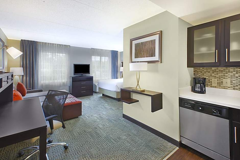 This spacious studio suite has free WiFi access and a sofa. An executive size work desk is perfect for business and a 32 inch TV offers entertainment. A fully equipped kitchen with cookware, microwave, fridge and stove top is convenient for meals.